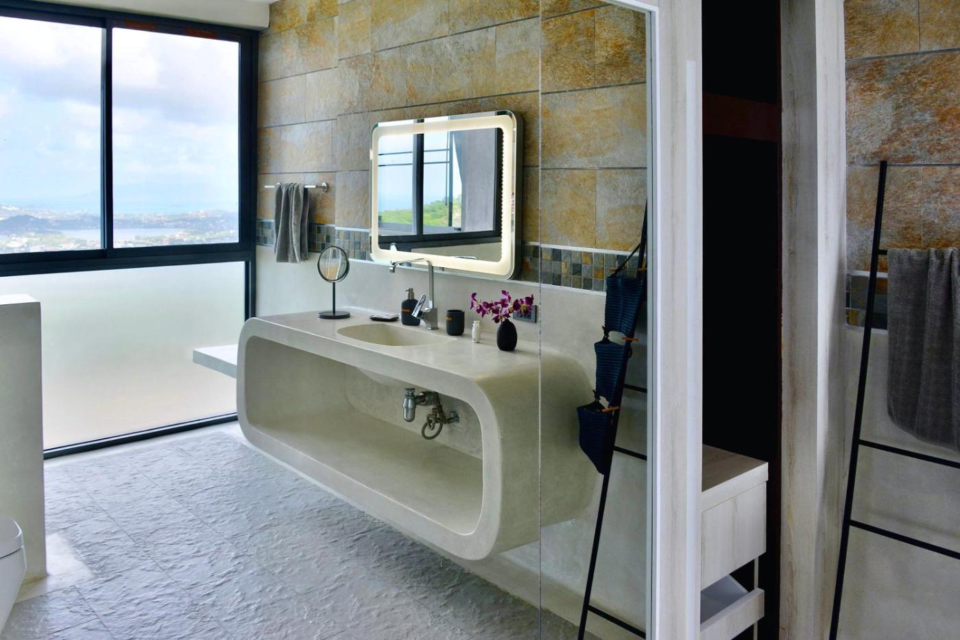 Villa. This villas special features are the pool with a view and the hot tub. This spacious villa consists of 1 living room, 4 separate bedrooms and 5 bathrooms with a walk-in shower and free toiletries. Guests can make meals in the kitchen that is equipped with a stovetop, a refrigerator, a dishwasher and kitchenware. The air-conditioned villa provides a flat-screen TV with streaming services, a washing machine, a private entrance, a minibar as well as sea views. The unit offers 4 beds.