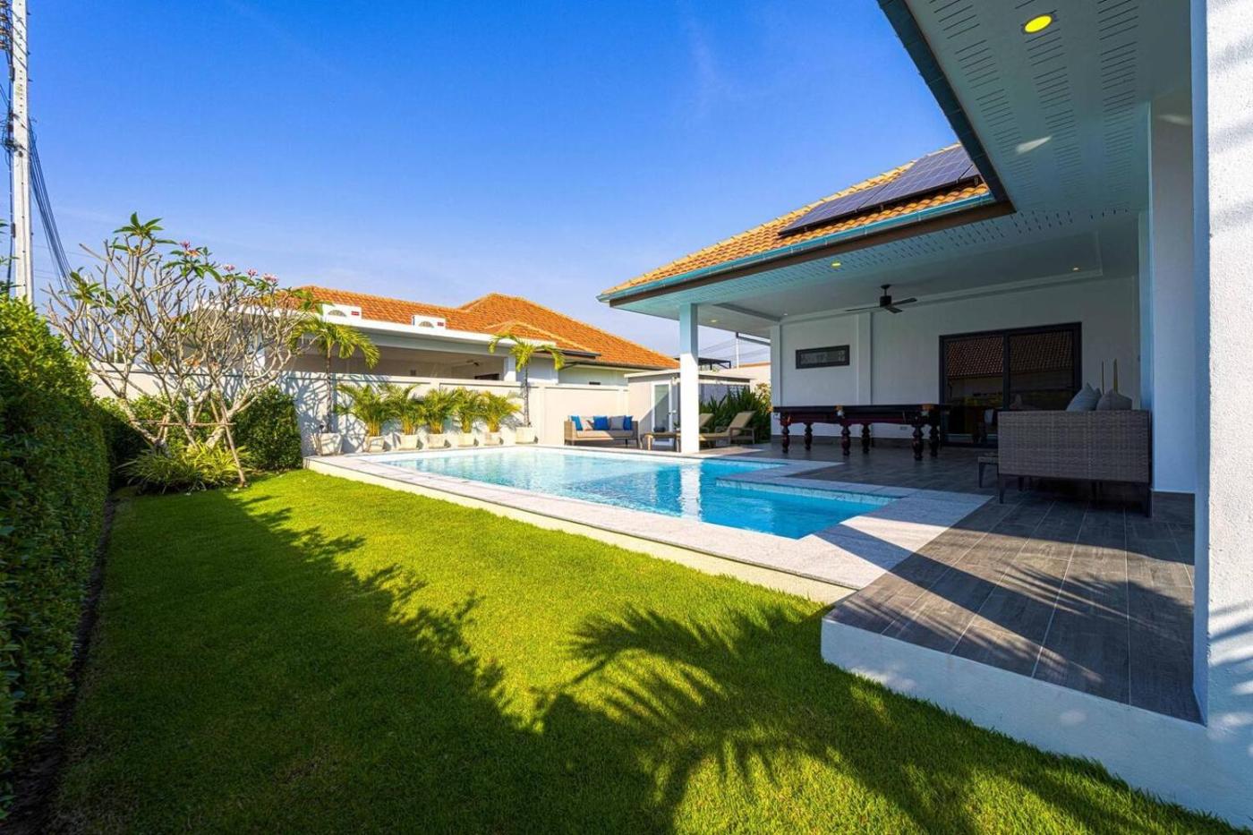 Set 10 km from True Arena Hua Hin, Modern 3 Bedroom Private Pool Villa ML7 has a year-round outdoor pool, free WiFi, and free private parking for guests who drive. 12 km from Cicada Market and 13 km from Hua Hin Market Village, the property offers a garden and a terrace. The property is non-smoking and is situated 12 km from Hua Hin Bus Station.