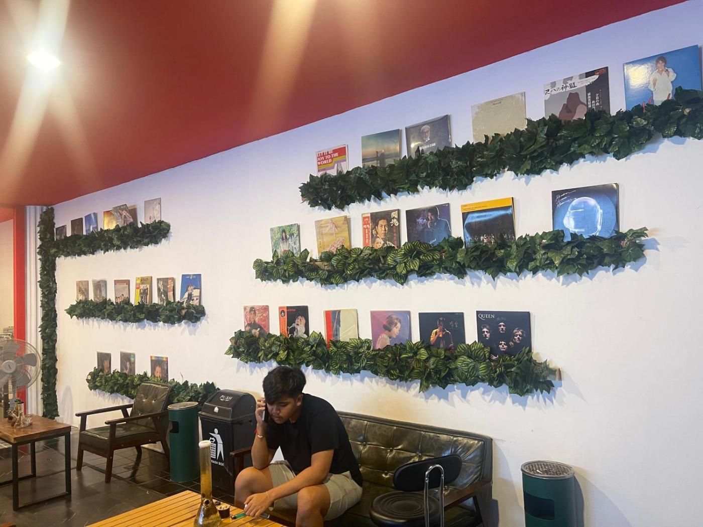 There is a coffee shop and bar.