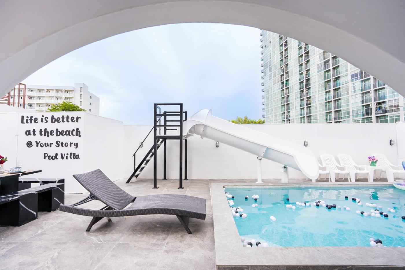 Boasting air-conditioned accommodation with a balcony, Your Story pool villa isin Jomtien Beach. This property offers access to a terrace, a pool table, free private parking and free WiFi. The villa offers an outdoor swimming pool with a water slide, as well as a hot tub and a shared kitchen.