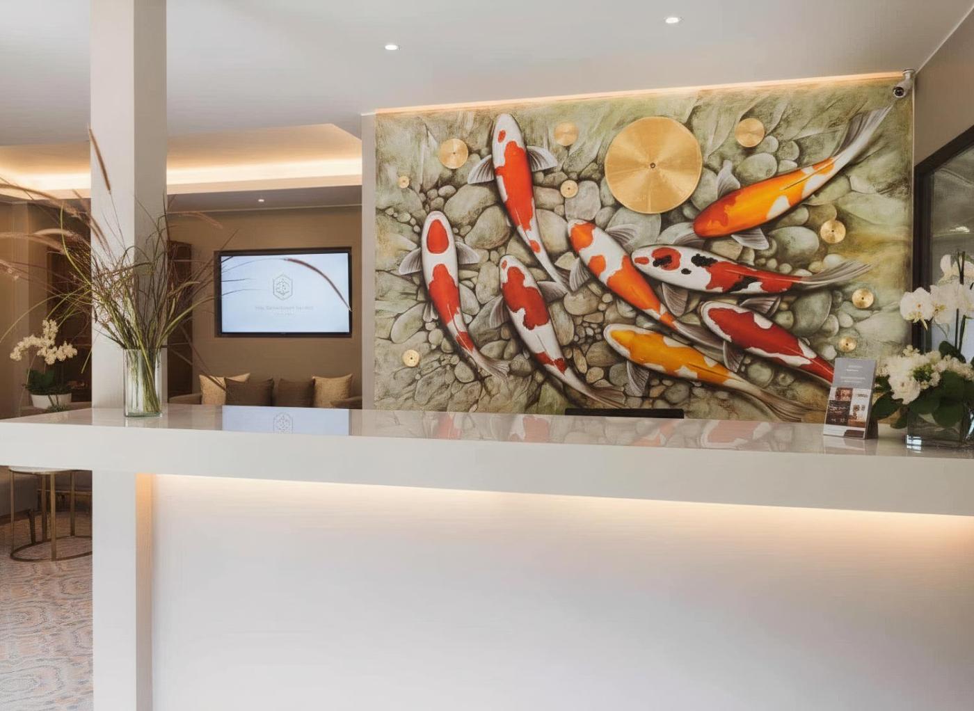Screens or physical barriers placed between staff and guests in appropriate areas
