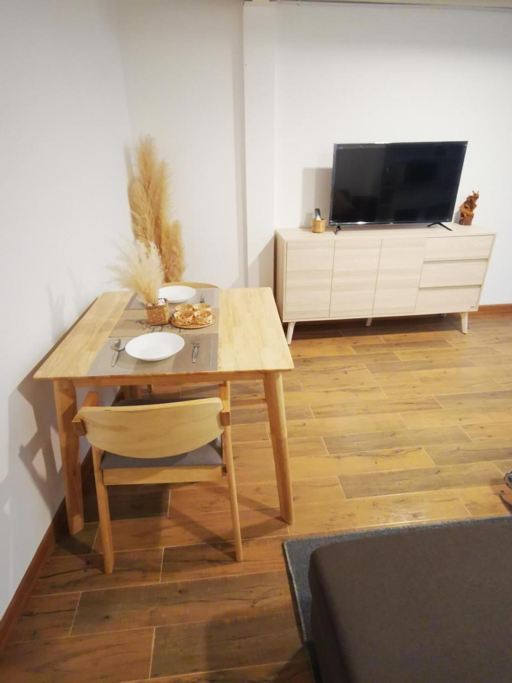Family Studio. The spacious family room features air conditioning, a tea and coffee maker, as well as a private bathroom boasting a shower and a hairdryer. This family room has a dining area, a wardrobe and a flat-screen TV. The unit has 3 beds.