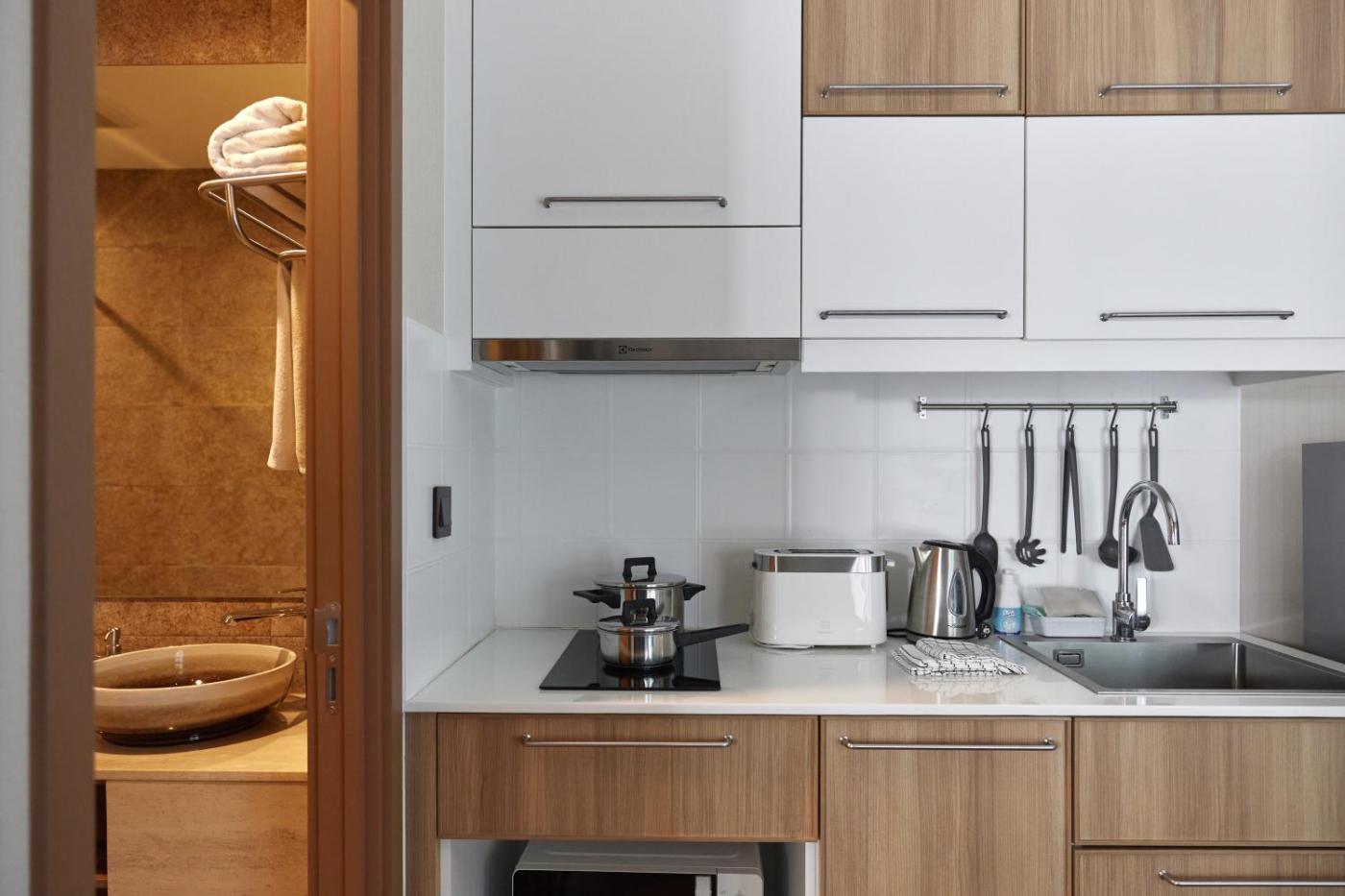 One-Bedroom Apartment. The air-conditioned apartment has 1 bedroom and 1 bathroom with a shower and a hairdryer. The well-fitted kitchen features a stovetop, a refrigerator, kitchenware and a microwave. Boasting a balcony with pool views, this apartment also features a washing machine and a flat-screen TV. The unit has 1 bed.